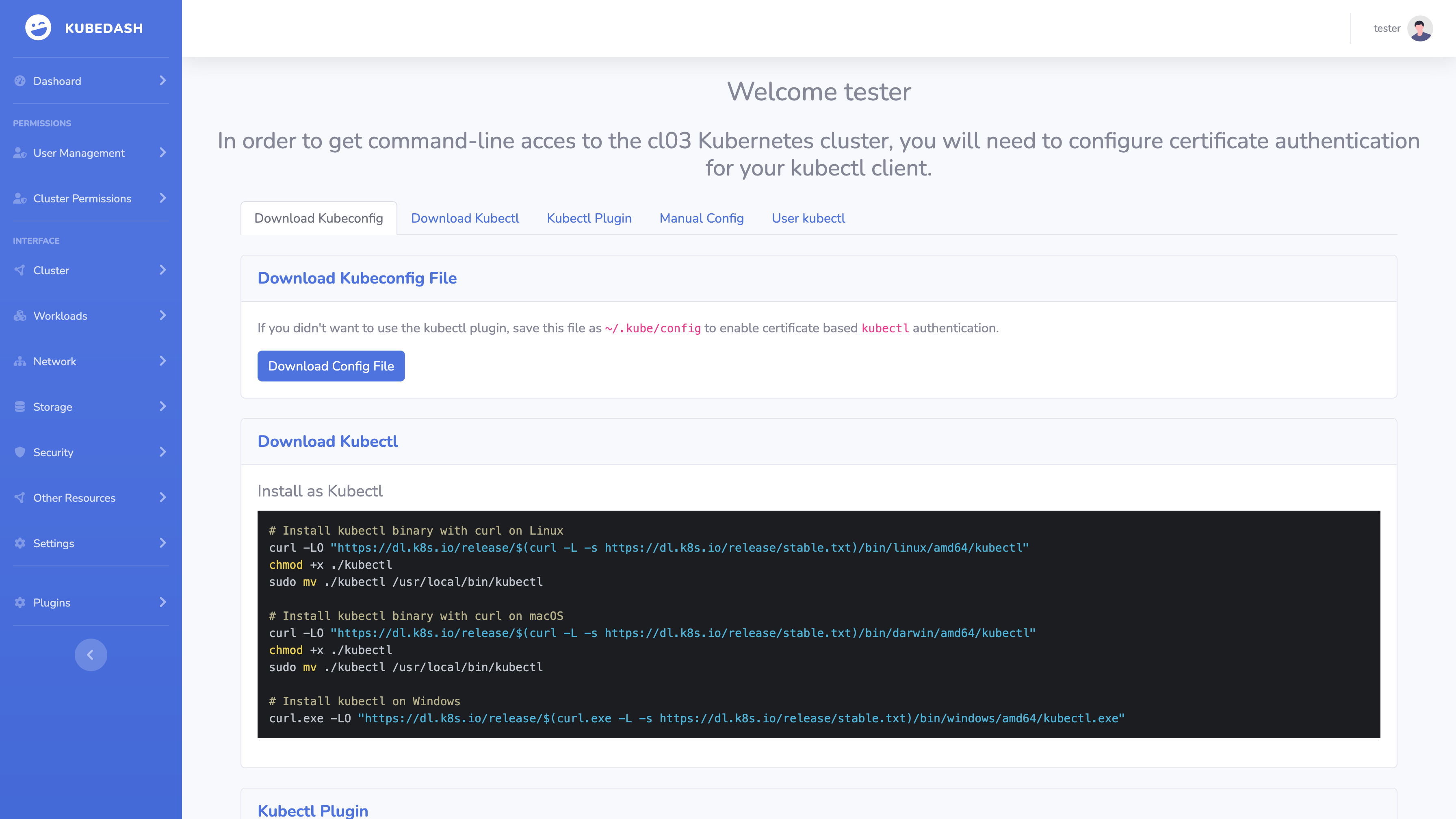 Download Kubectl Config for your user