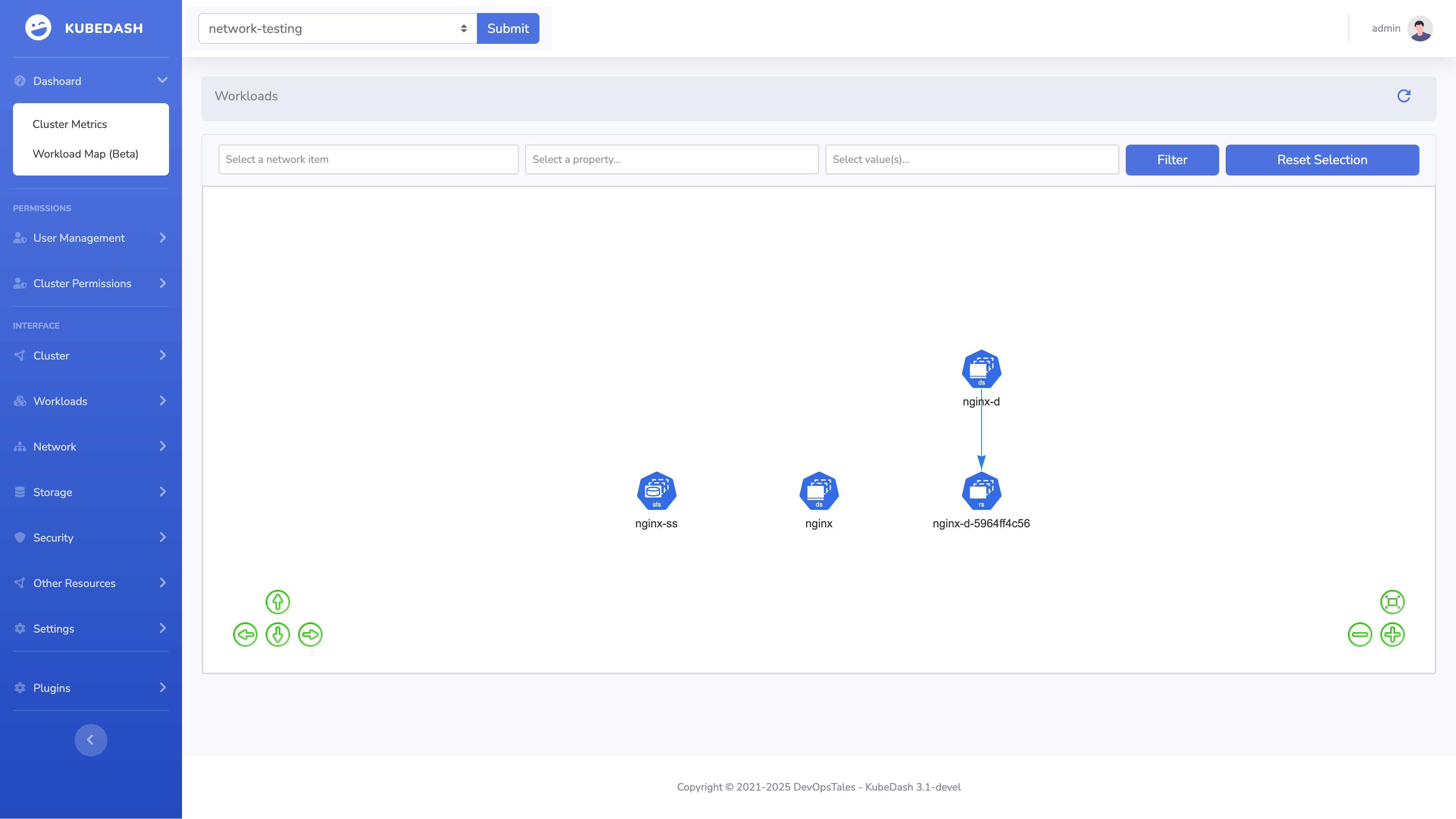 Resource Map With the Resource Map function you can visualize the connections of the Kubernetes objects in a namespace: