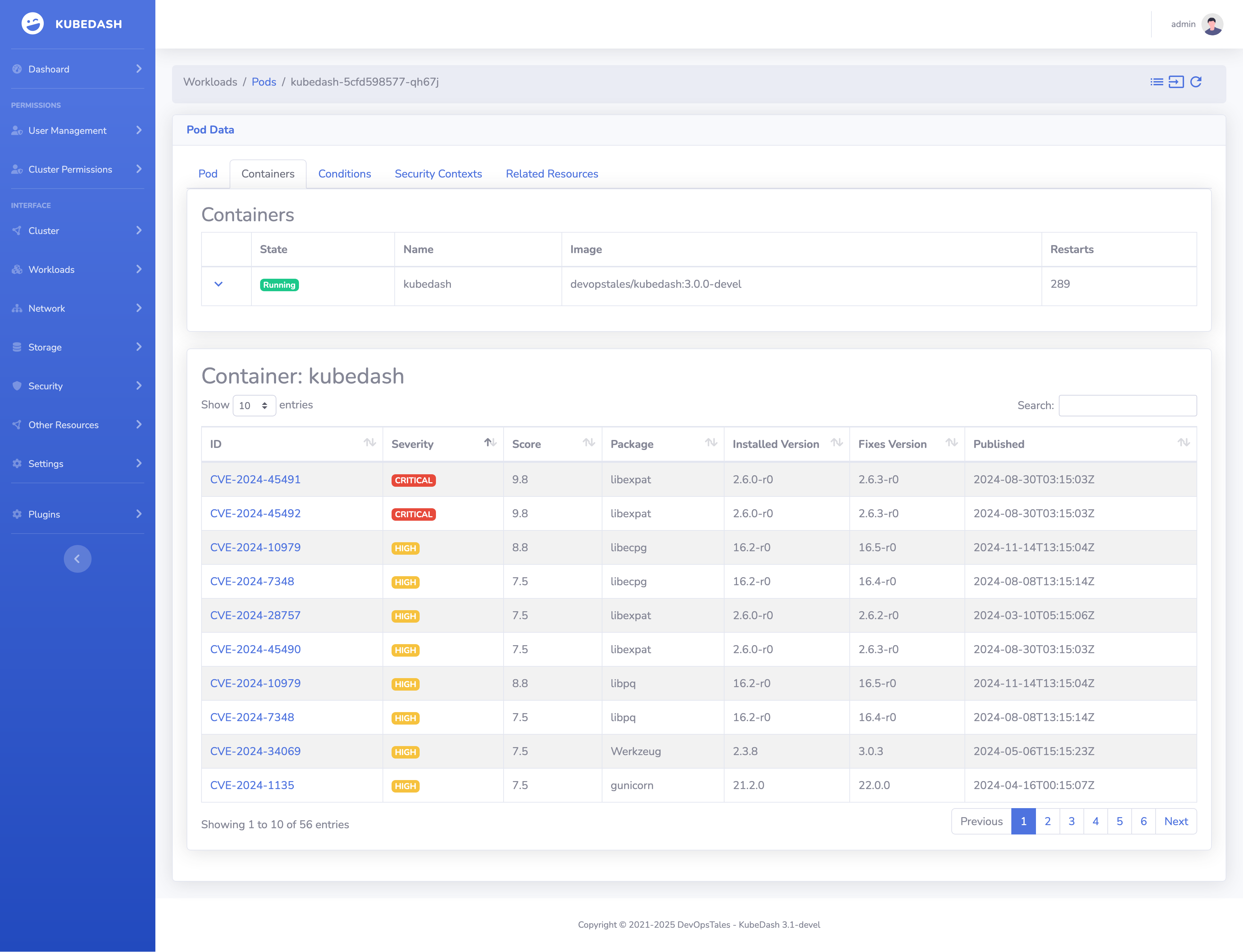KubeDash can integrate with my original trivy-operator and aquasecurity's official operator to show vulnerabilities in your cluster. Kubdash automatically detects the VulnerabilityReport Custom Resource Objects created by trivy-operator.